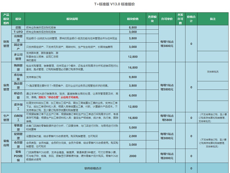 用友T+软件标准版报价,用友T+软件官网报价体系
