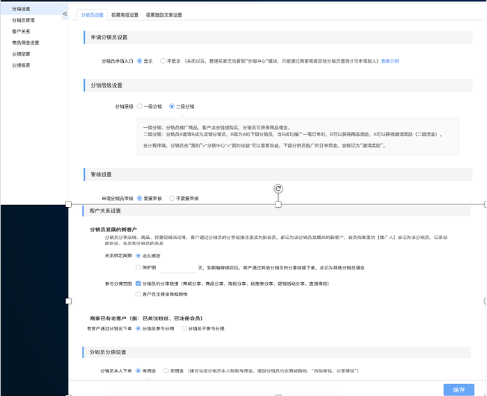 一、自由设置。企业自主定义分销层级、返佣规则等管理策略