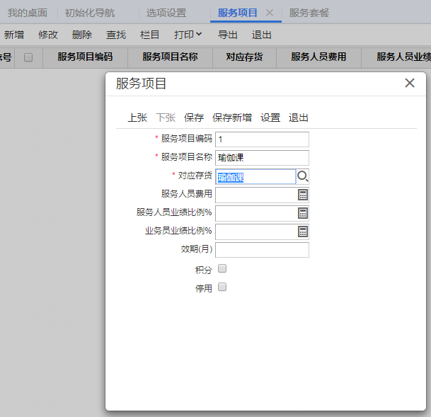 2、【基础设置】-【服务项目】,新增扣次服务项目。