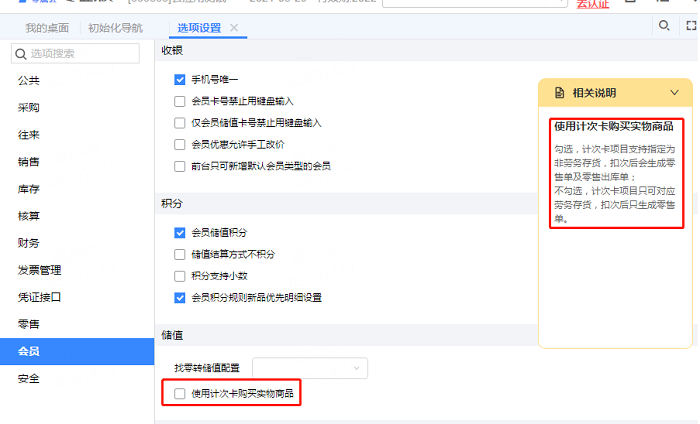 1、【系统管理】-【选项设置】-会员选项“使用计次卡购买实物商品”来适配以下业务场景: