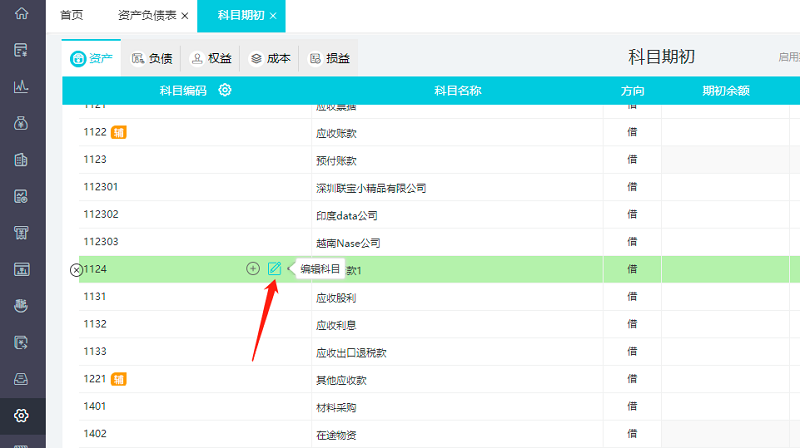 点击【设置】-【科目期初】,找到需要修改的会计科目,然后点击那个编辑科目就可以修改啦。