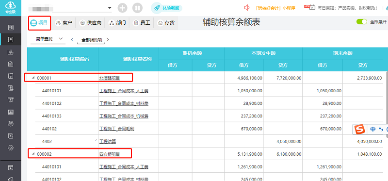 3如果想要每个项目之间彻底分开核算,那就需要把每个项目所涉及的课都设置【项目】辅助核算;