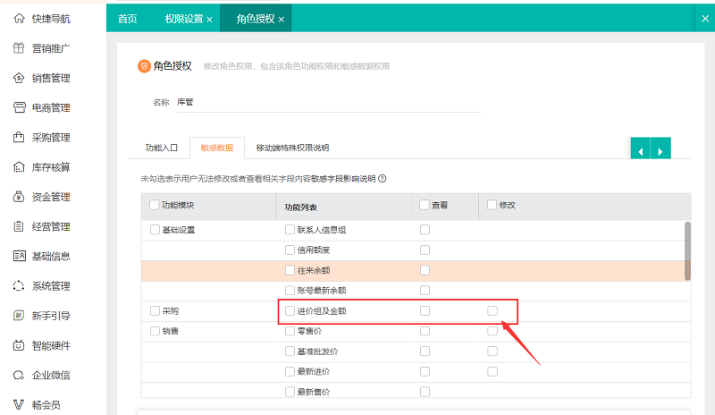 可以对于敏感数据进行授权,这个角色下的店员是否可以看到进价及成本或者销售价格;