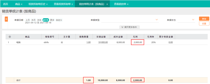 按照商品的维度来查询,看到销售数量、销售额及毛利情况,也可以查询商品毛利分析表看利润状况。