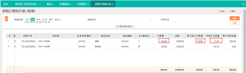 而好生意软件,采购订单执行表,统计订单处理进度,实时掌握进货、到货情况;