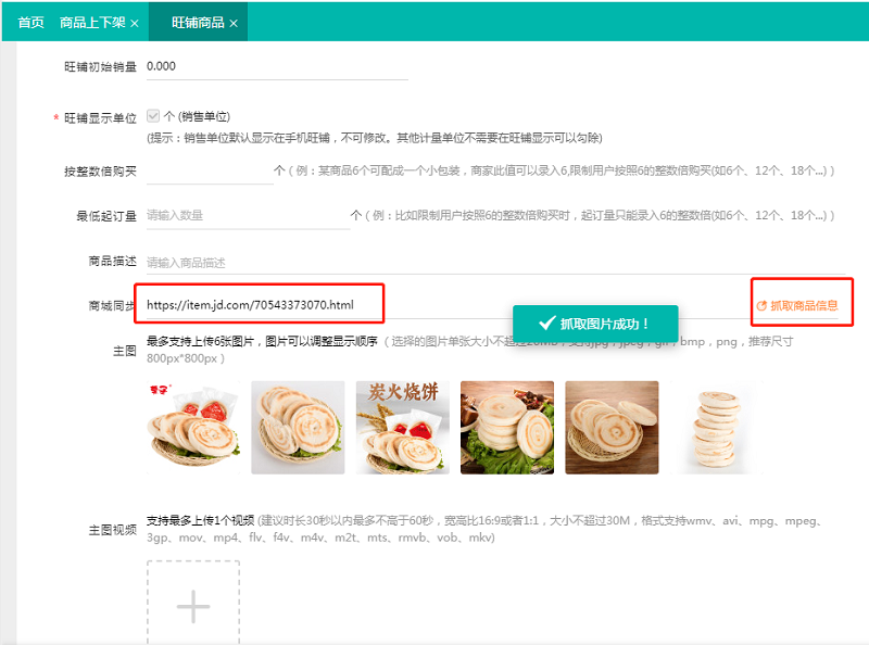 电脑也是支持的,点击【营销推广】-【商品上下架】,打开一个商品档案,在【商城同步】里面输入商品的京东链接地址后,点击【获取商品信息】,获取成功后即会把图片抓取过来。