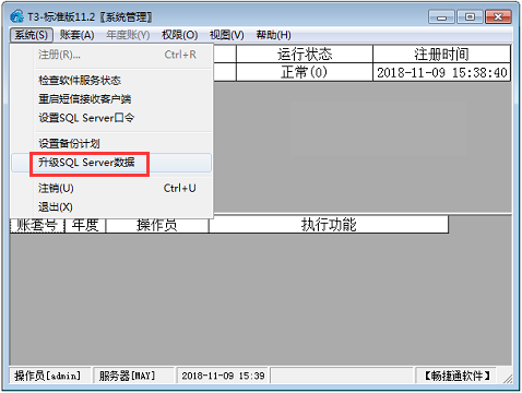 1.使用admin登录系统管理,点击系统-升级sql server: