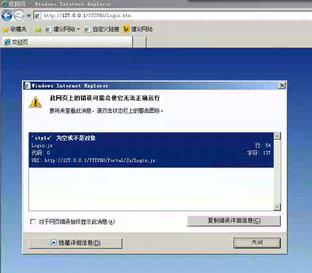 服务器主机的IE需要检查补丁更新,或者重置修复。检查是否IE 8以上版本32位。