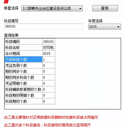 t+固定资产下建了2级科目,现在删不掉,提示被引用,用工具显示下级科目那一个打印机科目。