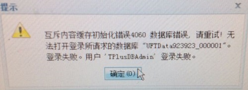 畅捷通T+备份提示互斥内容缓存初始化错误4060 数据库错误,请重试!