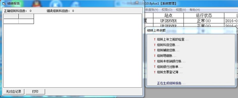 T310.8.1,做年结时结转报告是空的,结转后2016年年初数没有