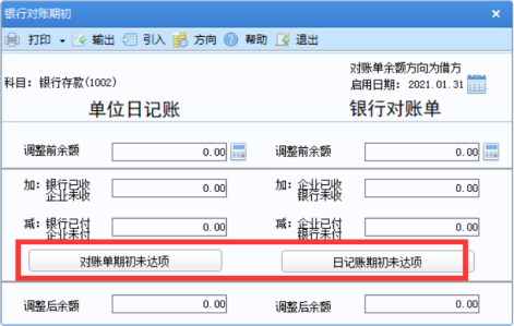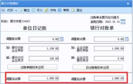 【注】:调整后余额需相等,否则后续的余额调节表会显示不平