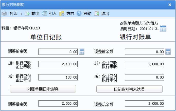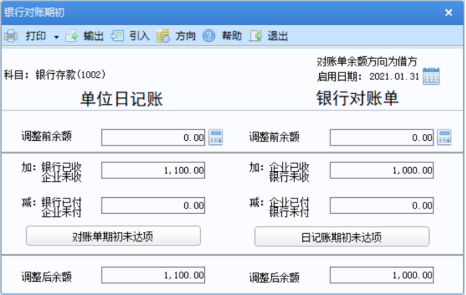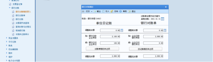 b. 修改了银行对账单期初录入的方向