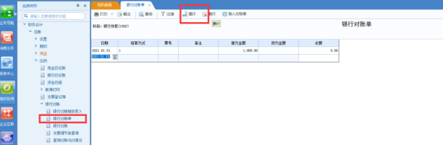 2、录入对账单启用后的日期的银行科目凭证(需要记账)和对账单