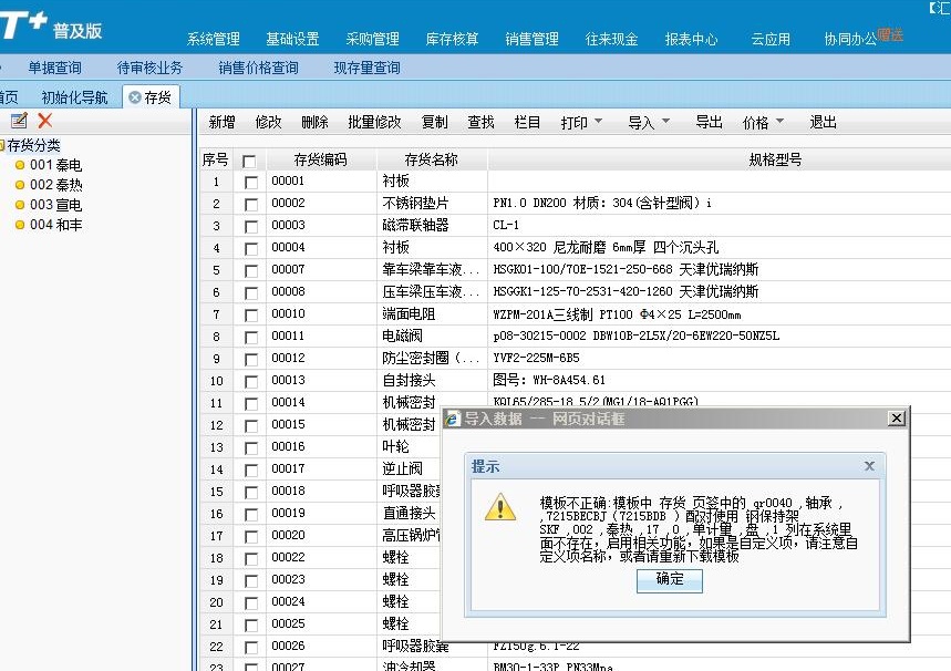 畅捷通T+普及版存货无法批量导入,提示:模板不正确?