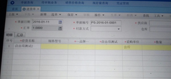 库存业务单据的自由项是必录不受控。不能修改。库存必须录入自由项内容。