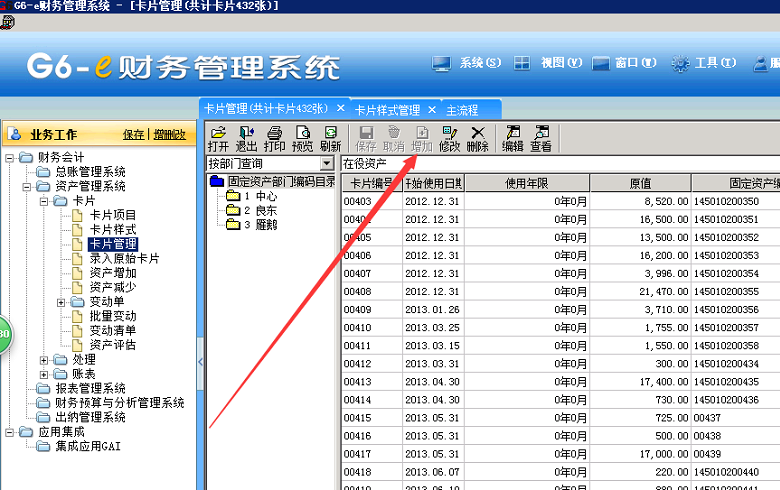 点录入原始卡片或者资产增加进去录入卡片,卡片管理界面不能点增加的。