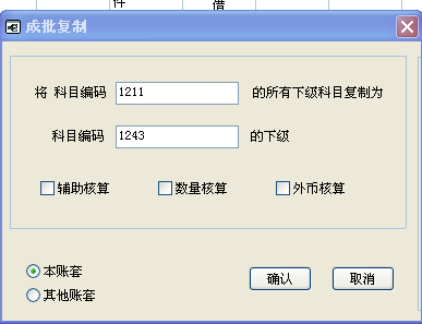 用友软件中想把原材料下面的二级科目。全部复制到库存商品和销售里面去,提示成批复制。