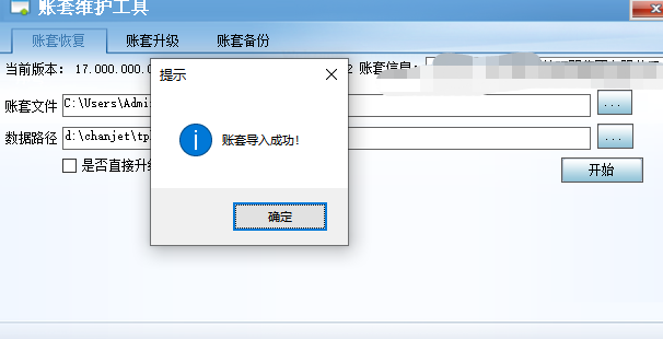 3、重新在T+账套维护工具内恢复备份,恢复成功。
