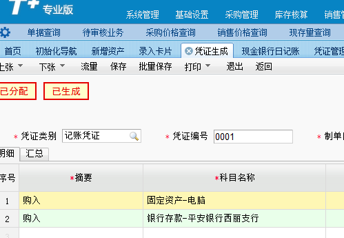 T+新增固定资产卡片生成的凭证,银行存款日记账没有记录要怎么处理?