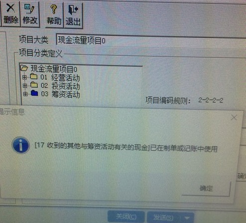 提示这个是分类总的现金流量项目已经被关联使用了,不能删除这个项目分类。