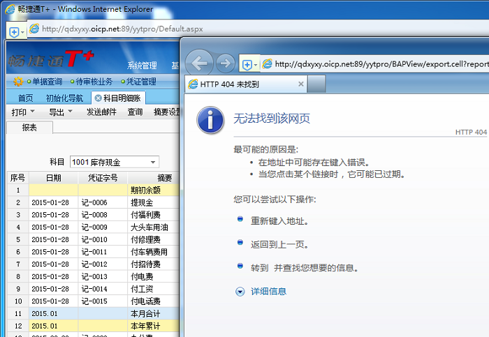 T+软件导出明细账提示HTTP:404错误,如何处理?