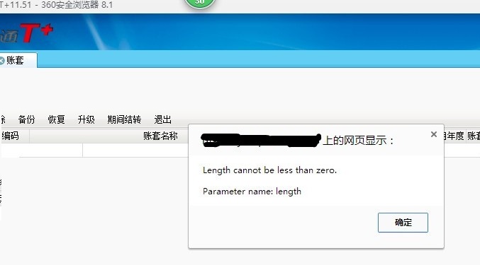 T+软件版本是11.51,进系统管理报错。