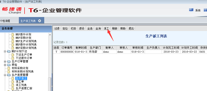 T6软件生产派工,点击了派工,为什么派工单里没有信息?