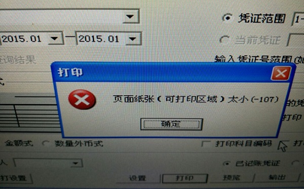 畅捷通t3标准版10.82凭证激光打印出错:页面纸张可打印区域太小?
