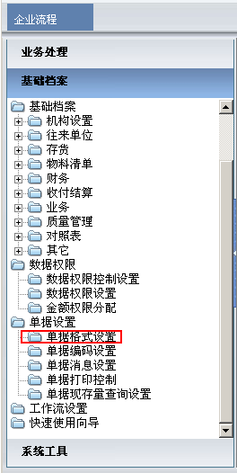 1、 在“基础档案”中打开‘单据格式设置’