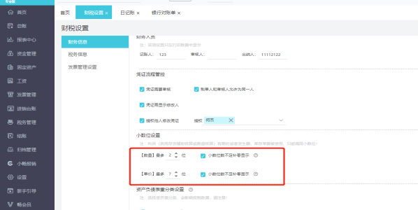 【设置】-【财税设置】增加了数量小数位设置,最多可设置8位。且可设置如果小数位不足可以自动补0。