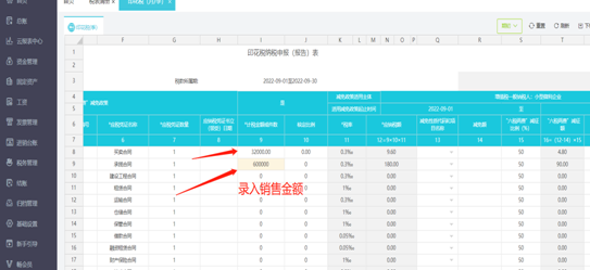2、录入销售计税金额,核对申报表印花税税额,核对税额无误后保存申报表。