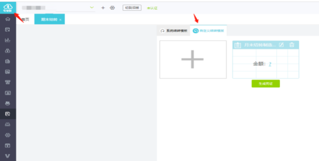 ①在好会计/易代账中,进入【结账】-【期末结转】页面,左上角找到自定义结转模板。