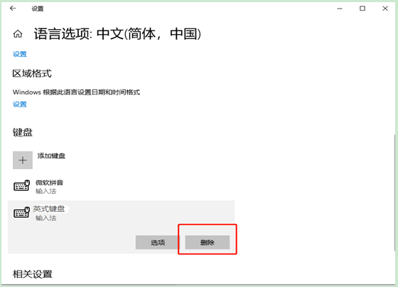 往下拉,在键盘中找到英式美式键盘,点击删除即可