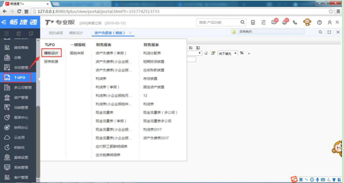 1、打开【T-UFO】-【模板设计】,打开【资产负债表】模板;