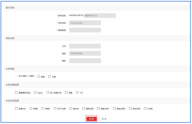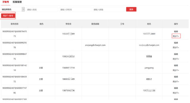(2)编辑子账号,进行赋予账号角色(每个新人员入职均需要重新授权才可正常使用)。