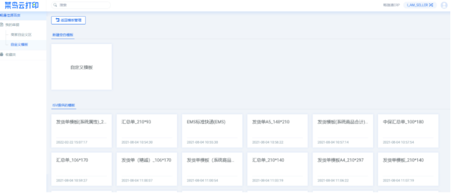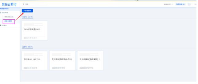 不论是什么店铺的订单,打印发货单,模版都可以使用菜鸟模版编辑器里建的发货单模版来打印,发货单模版编辑同新建菜鸟快递模版的新建位置,只是发货单新建的是自定义模版,如下图: