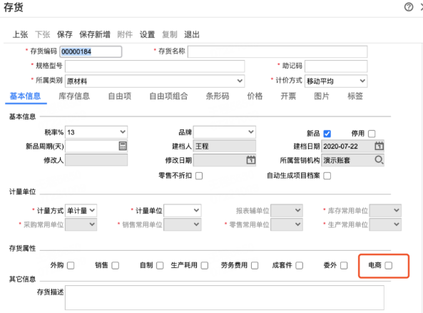 l 未启用自由项的存货,一个存货即一个电商商品;