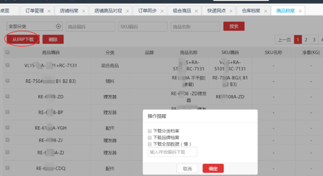 (2)点击【从ERP下载】,将下载T+的电商商品,下载电商商品编码不为空的电商商品