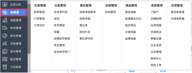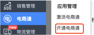 (2) 开通完成后可以展示全部电商通全部菜单