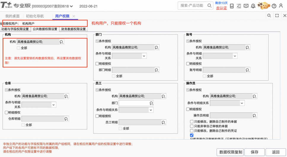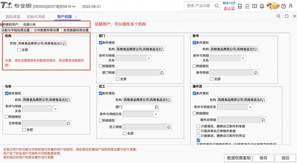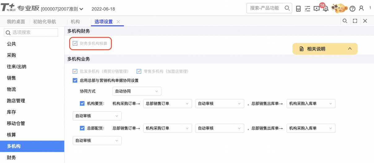 Cloud、专业版,启用“分销管理”可以启用【批发多机构】,启用“零售管理”后可以启用【零售多机构】;