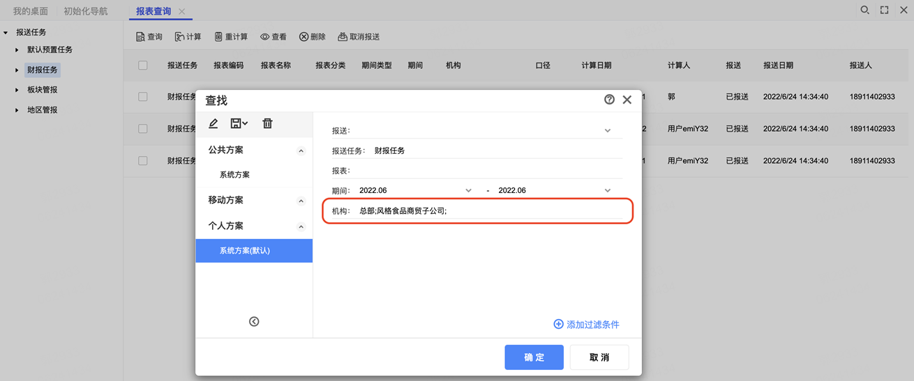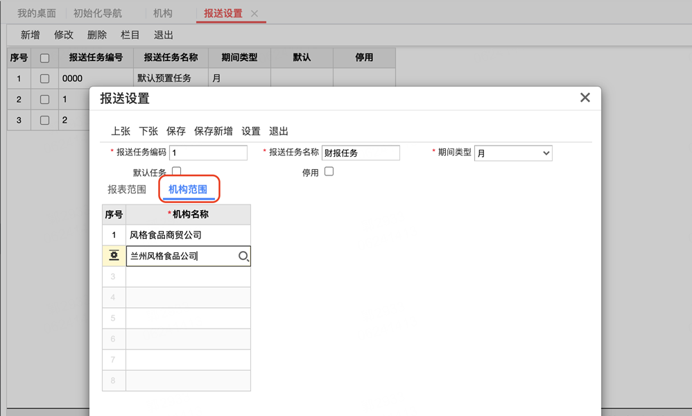 报表任务:根据分析需要,设置多个报表任务,要求不同机构、按不同顺序、上报不同报表,比如:标准财报、板块管报、地区管报。