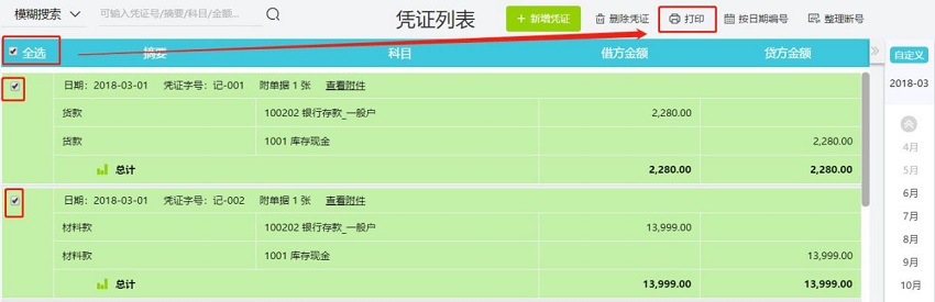 (1) PDF 打印:以A4 纸为打印耗材,打印凭证所有内容;(3) 专业套打:适应指定的金额式专业套打凭证纸。(需下载打印插件)
