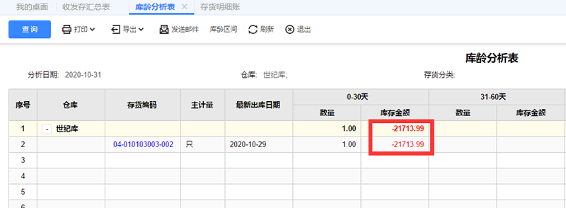 综上,存货明细账的记录数量为0或者红蓝回冲单组合不影响存货数量的单据发生了金额,是不影响库龄分表中当前区间的库存金额的取值的。