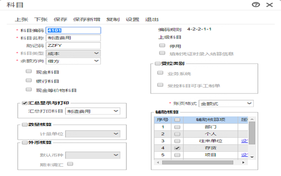 比如说我制造费用要转生成成本,制造费用挂了辅助核算,例如存货: