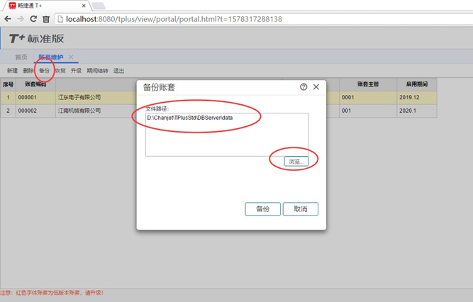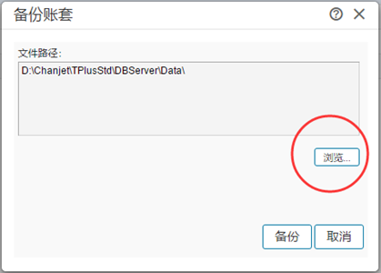 只能备份本账套的文件,存放在服务器内,如图: