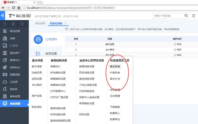 同时,在业务操作端,也可以通过账套主管,对使用账套进行数据的备份,在系统管理-账套管理及工具-备份账套