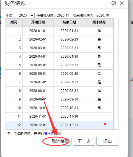 打开财务结账:直接点下面的取消结账即可,得一个月一个月的取消结账,按顺序。