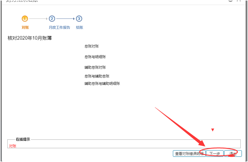 全部做完之后当月要进行月末结账,直接点最后的月末结账,即可,一直下一步下一步到最后点结账。
