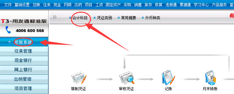 凭证默认必须审核之后才可以记账,当然T3也提供了不审核直接记账的功能,点开总账---设置----选项,如下图: